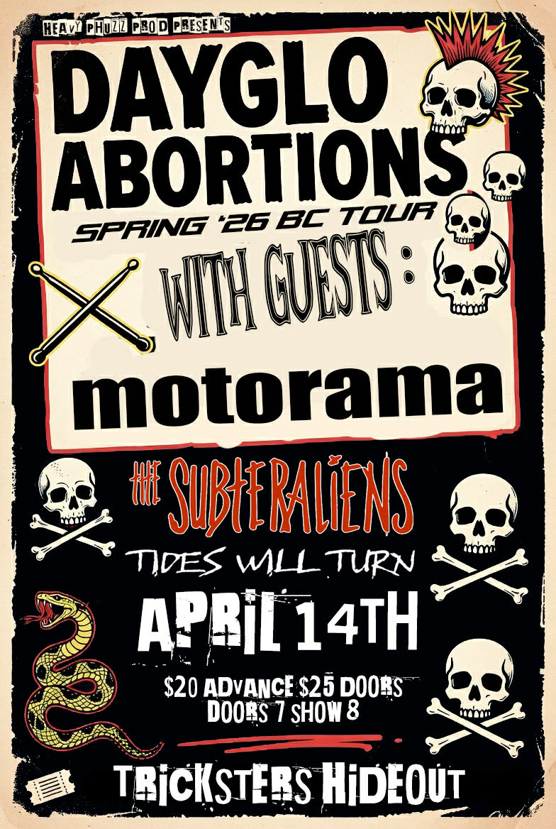 FeaturedTrickster's Hideout 38005 Cleveland Ave, Squamish, BC, CanadaVictoria BC Punk Rock Legends come to Tricksters on April 14! Do not miss your chance to see this incredible show with this legendary band. with Motorama, Subteraliens, and Tides Will Turn